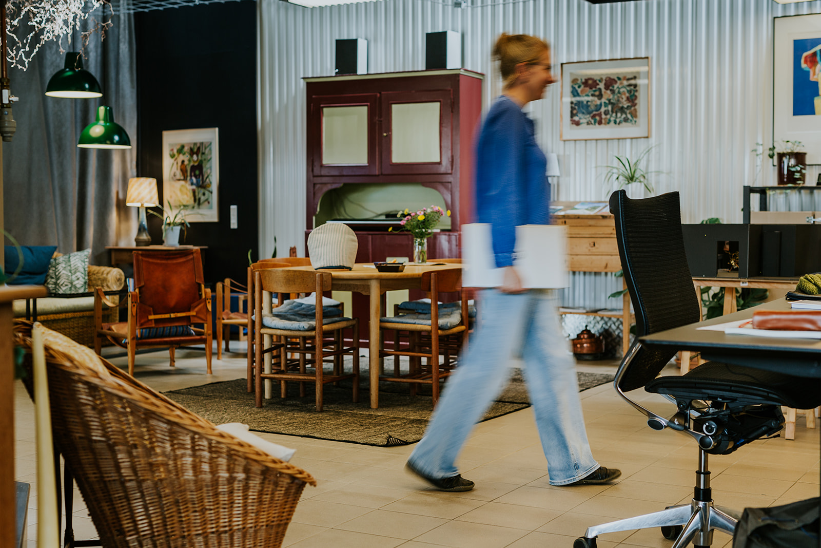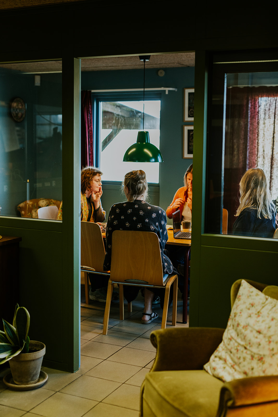 CoWork Langeland er indrettet i et råt og stort rum. Vi har derfor gjort noget ekstra for at gøre det til et hyggeligt, varmt og indbydende sted at arbejde.